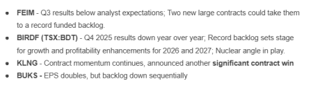 Standout Earnings from PYFRF, BDT.TO, PRL.TO, SVT, BKTI; TGEN Q2 Disappoints, But Bright Spots Apparent